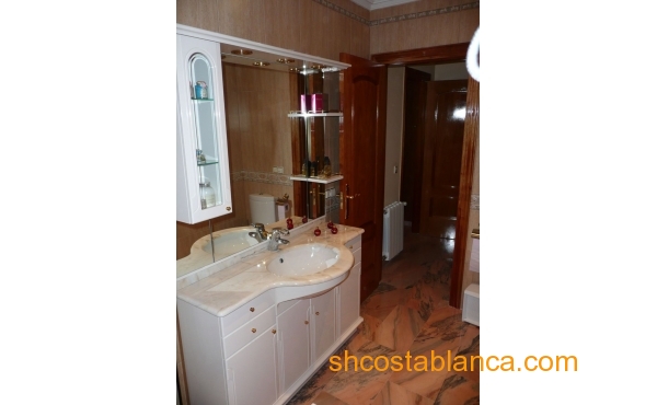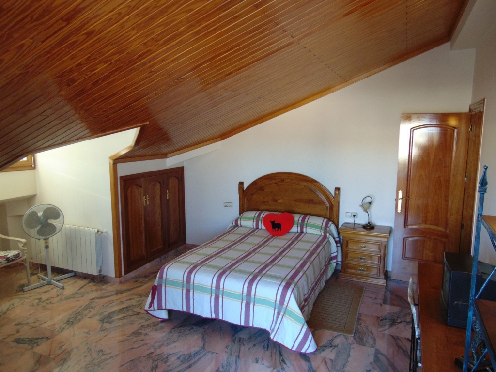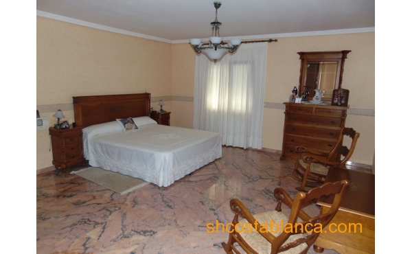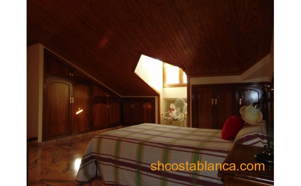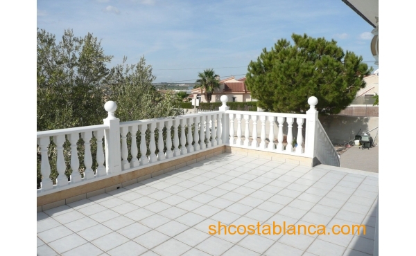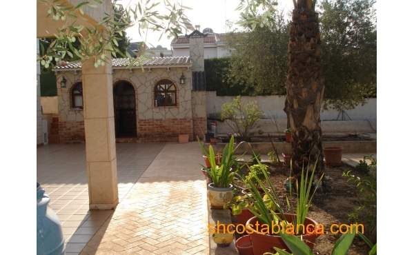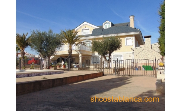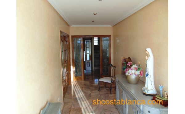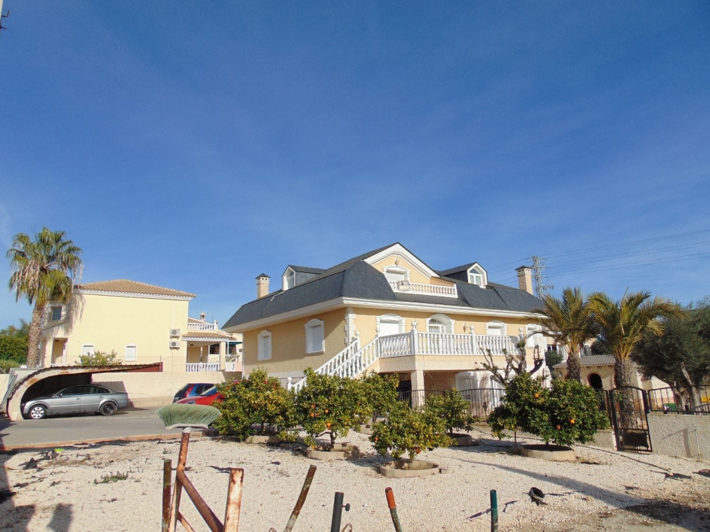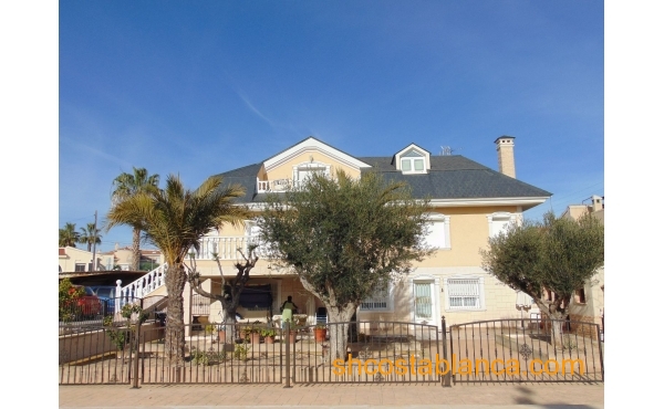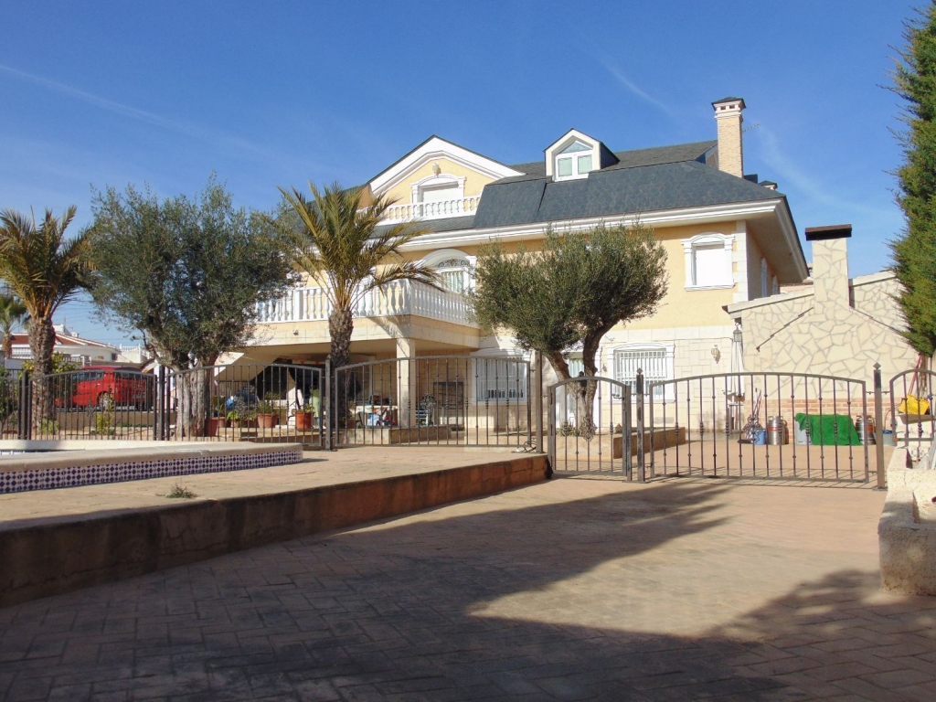Belle villa située dans le Centre de Ciudad Quesada. La maison est construite sur un terrain de 650 m2, 550 m2 habitable réparti sur trois étages. Le rez-de-chaussée comprend une grande cuisine avec cellier, salon, salle de bains, buanderie, chambre, salle de jeux. Le premier étage est divisé en un grand salon, deux salles de bains, 2 chambres dont une avec dressing, grande salle. Au dernier étage est un beau grenier avec plafonds de bois, 4 grandes chambres, 1 salle de bain, 2 terrasses. Chambres doublés penderies. Les qualités sont d’abord : portes en merisier massif, étage rez-de-chaussée de plaquettes et le reste de l’habitation de rose marbre toit d’ardoise, fenêtres en aluminium extérieur et bois à l’intérieur, fenêtres à battants, chauffage central, air conditionné dans les chambres, portes de sécurité, Stores aluminium, stores électriques. Extérieur on trouve, WC, cheminée four barbecue et cuisine équipée, parking couvert pour trois véhicules, arbres fruitiers. Habitable de suite. Ainsi que tous les services. En raison de sa proximité de terrains de golf, il est idéal pour ouvrir un bed & breakfast.