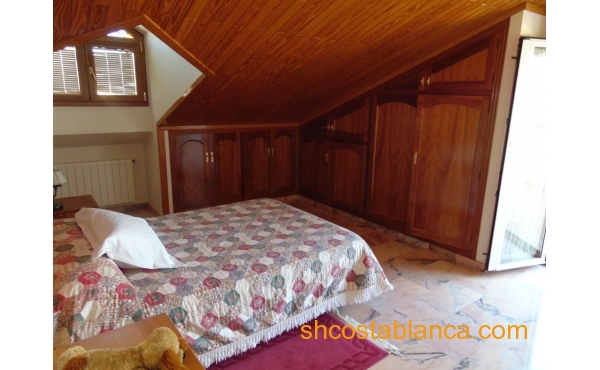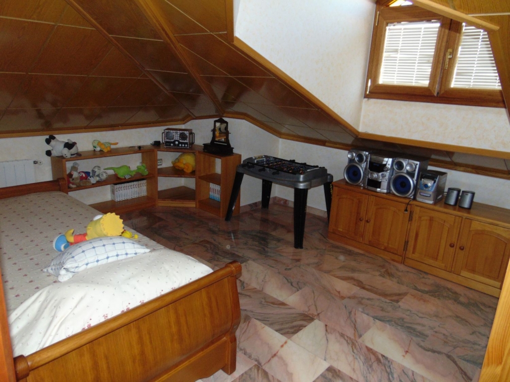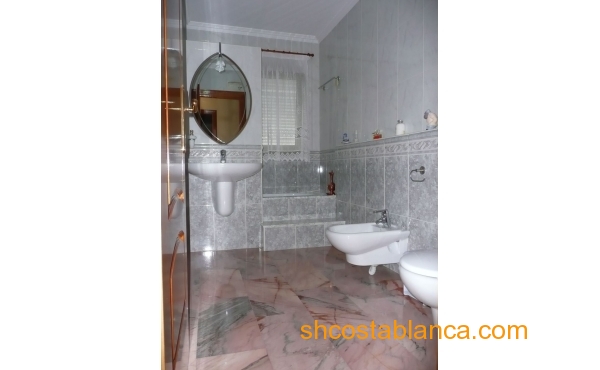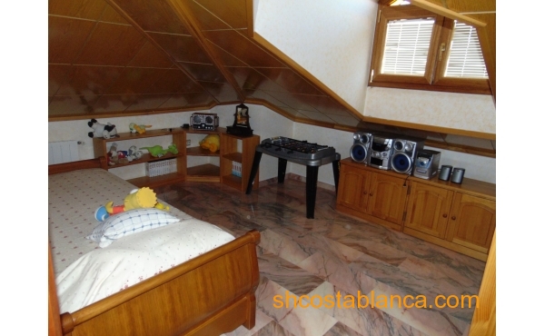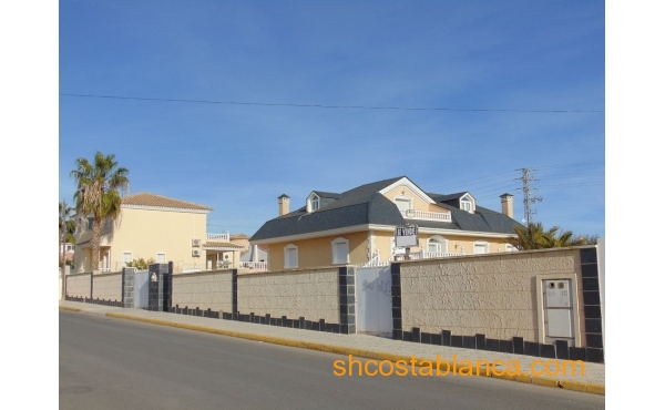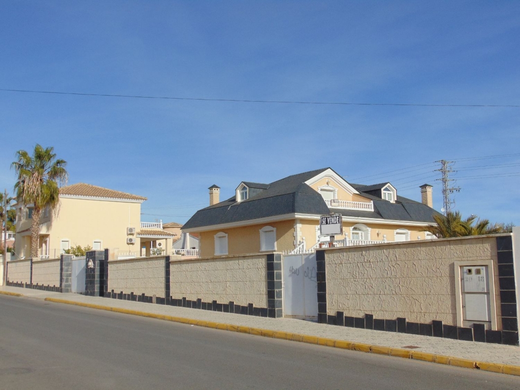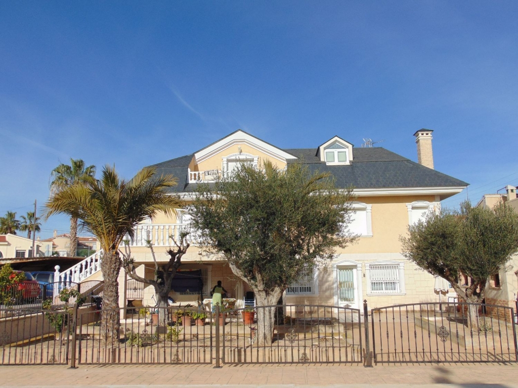 Belle villa située dans le Centre de Ciudad Quesada. La maison est construite sur un terrain de 650 m2, 550 m2 habitable réparti sur trois étages. Le rez-de-chaussée comprend une grande cuisine avec cellier, salon, salle de bains, buanderie, chambre, salle de jeux. Le premier étage est divisé en un grand salon, deux salles de bains, 2 chambres dont une avec dressing, grande salle. Au dernier étage est un beau grenier avec plafonds de bois, 4 grandes chambres, 1 salle de bain, 2 terrasses. Chambres doublés penderies. Les qualités sont d’abord : portes en merisier massif, étage rez-de-chaussée de plaquettes et le reste de l’habitation de rose marbre toit d’ardoise, fenêtres en aluminium extérieur et bois à l’intérieur, fenêtres à battants, chauffage central, air conditionné dans les chambres, portes de sécurité, Stores aluminium, stores électriques. Extérieur on trouve, WC, cheminée four barbecue et cuisine équipée, parking couvert pour trois véhicules, arbres fruitiers. Habitable de suite. Ainsi que tous les services. En raison de sa proximité de terrains de golf, il est idéal pour ouvrir un bed & breakfast.
